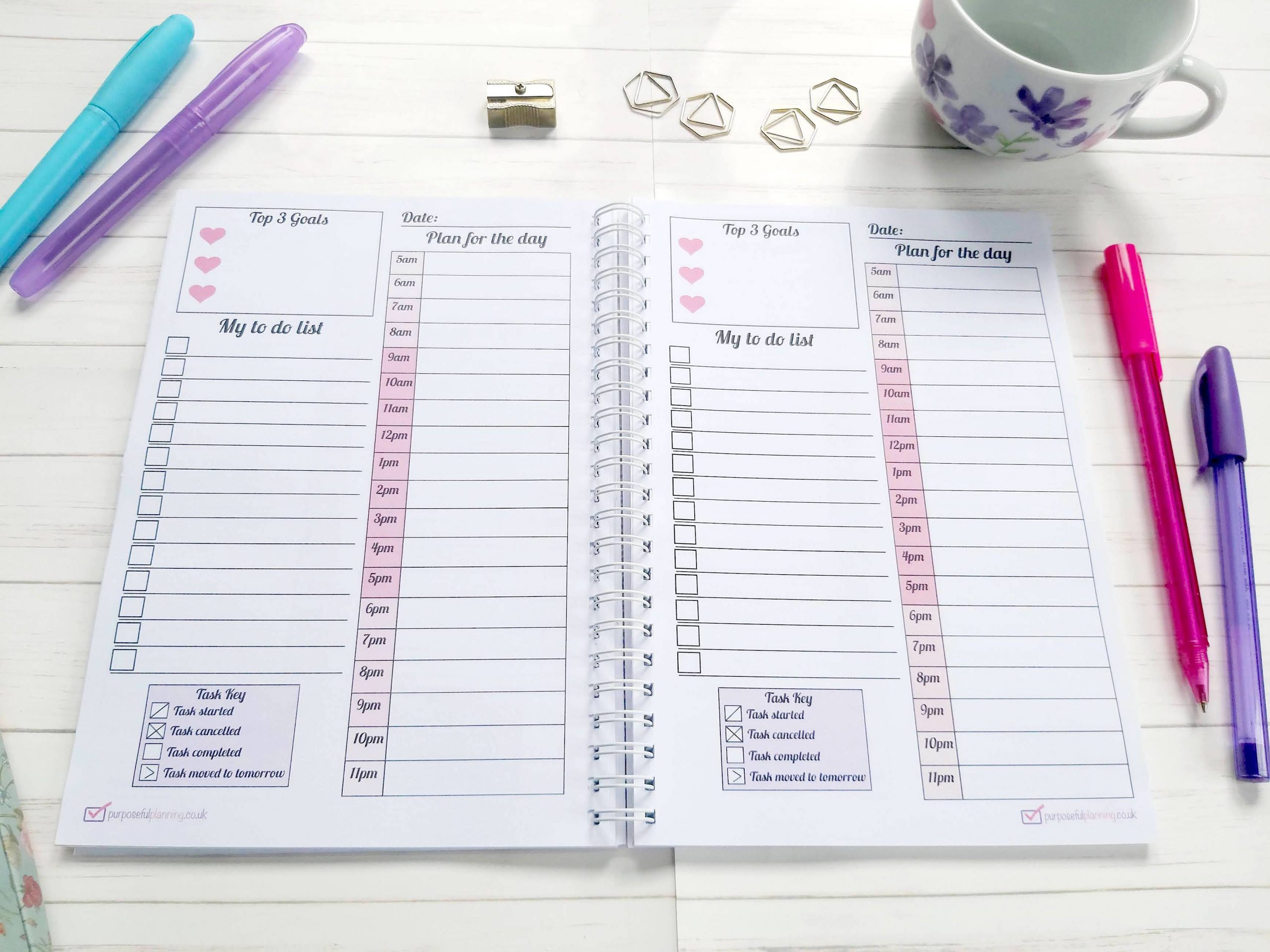 Undated daily pages – start whenever you like and skip days without losing pages